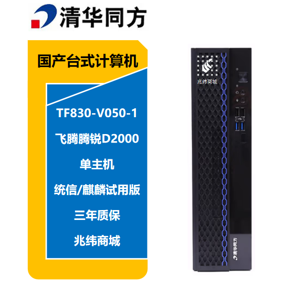 台式计算机 清华同方/THTF 超翔TF830-V050-1 飞腾腾锐D2000 2.3GHZ 8核 8G 256G 1G独立显卡 单主机 试用版