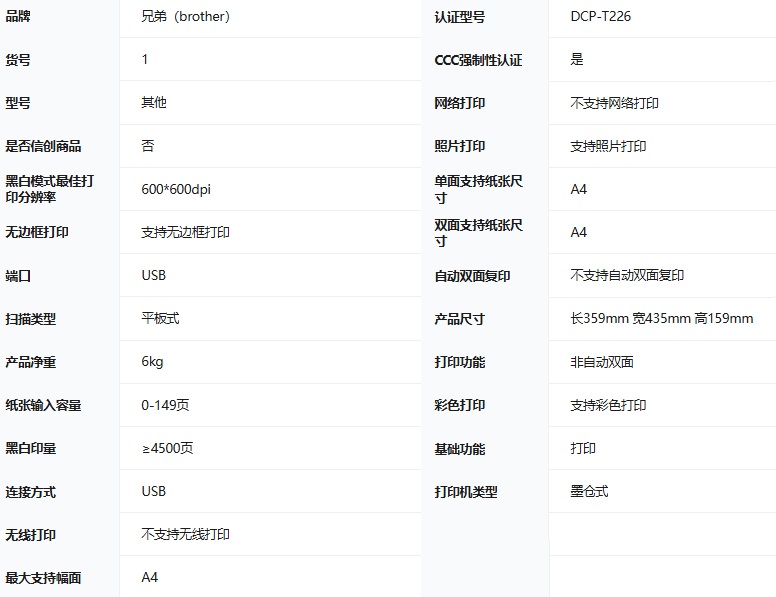 型号:  DCP-T226