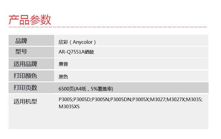 | 适用机型 | 惠普HP P3005 P3005d 3005dn M3027MFP M3027xMFP |
